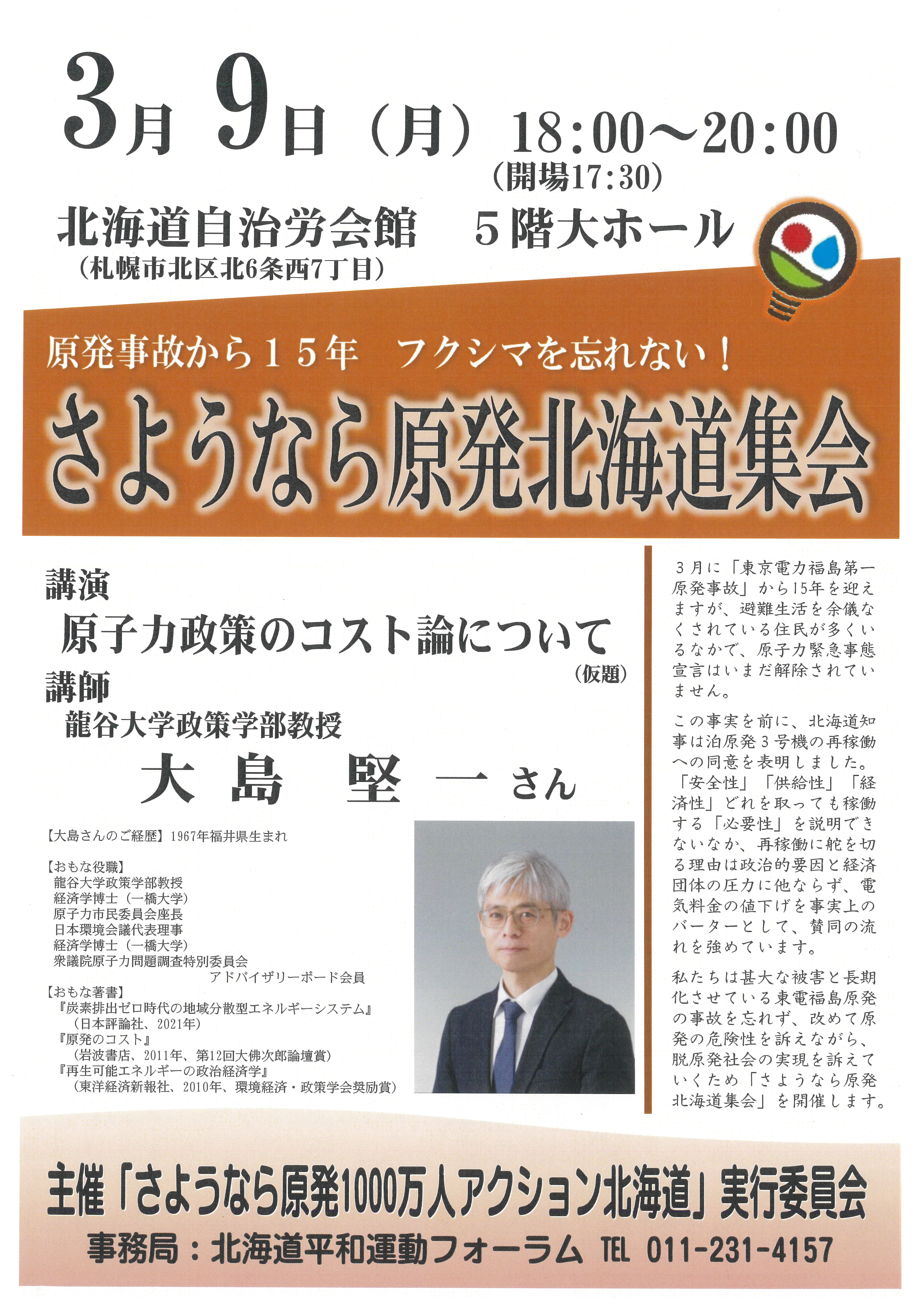3.主 催 「さようなら原発1000万人アクション北海道」実行委員会